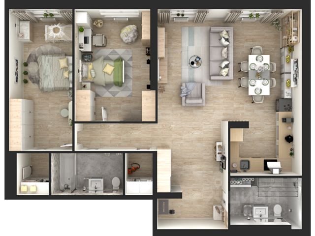 2 санузла , отдельная постирочная ,большая прихожая и 2 гардеробные добавляют удобства и практичности в повседневную жизнь.
