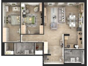 Планировка квартиры формата 2+ включает две изолированные спальни 17,6 кв. м и 16,6 кв. м , что позволяет каждому члену семьи наслаждаться личным пространством. Просторная кухня-гостиная 39,1кв.м, станет центром домашнего уюта, где можно собираться с близкими и проводить время за общими делами.