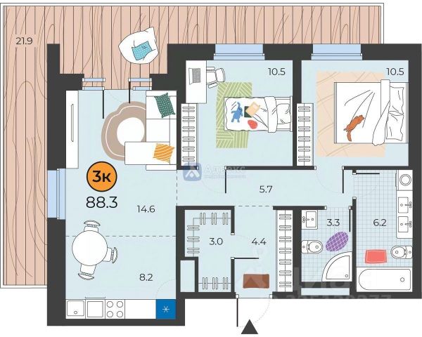 Продается 3-комн. квартира с первичной отделкой в ЖК "Прео" на 17 этаже. Общая площадь: 62.83 кв.м., жилая: 36.37 кв.м., площадь просторной кухни-столовой: 11.24 кв.м. Квартира угловая, очень светлая, естественная вентиляция при открытии окон. В квартире один балкон, один раздельный санузел. Высота потолков 2.7 м.