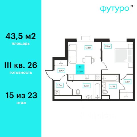 Продаётся 1-комнатная квартира в строящемся доме (ГП-1), срок сдачи: IV-кв. 2028, общей площадью 43.39 кв.м., на 15 этаже. Новый жилой комплекс "Континент" от Специализированного застройщика "Расцвет" расположен по адресу: г. Тюмень, по ул. Червишевский Тракт.