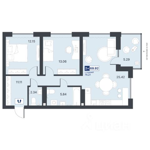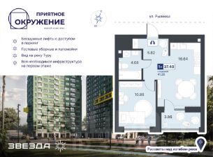Квартира с кухней-гостиной и одной спальней в Октябрьском на Туре. Особенности планировки: балкон, предчистовая отделка. квартиры в нашей базе: ОКТ09-Ж1.15.4. Район Проект расположен на берегу реки, в одном из самых живописных и экологичных районов Тюмени. За последние годы облик района изменился. По соседству с индивидуальной застройкой выросли многоквартирные дома. При проектировании "Октябрьского на Туре" нашей приоритетной задачей стало сохранение природного ландшафта: мы постарались деликатно вписать в него современную архитектуру. Квартал удачно расположен с точки зрения дорожной инфраструктуры. На автомобиле путь до центра города составит 15 минут. Добраться до набережной и главных тюменских достопримечательностей можно и на общественном транспорте. В пешей доступности находится автобусная остановка. Проект По мастер-плану здесь будет восемь домов. Ядро застройки составляют замкнутые кварталы переменной этажности. Их высотность понижается по мере приближения к реке. На углах участка мы разместили башни-доминанты. Одной из достопримечательностей квартала станет парк на Туре — здесь появится зеленая зона протяженностью около 6 километров для пеших и велопрогулок. Смысловая ось квартала — широкая главная улица с высаженными вдоль неё высокими деревьями. Они создают тень и работают как шумо- и пылезащитные экраны. Это место сосредоточения основных пешеходных и транспортных потоков, на сторону которых мы ориентировали большинство коммерческих помещений. Отсюда жители могут свернуть на тихие соседские улицы и попасть на внутриквартальную площадь — ещё одну точку притяжения. #zMD87i