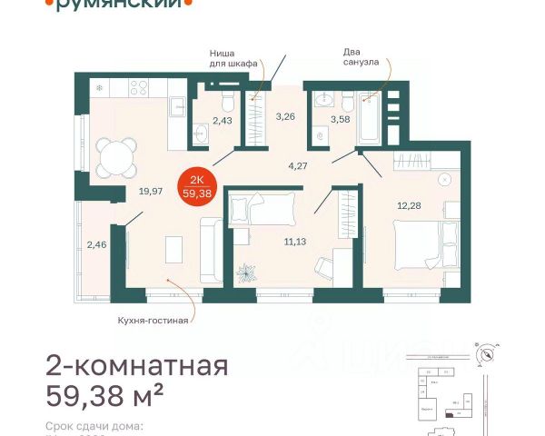 Вся необходимая инфраструктура находится в шаговой доступности: детские сады, школы, поликлиника, магазины, аптеки и остановки общественного транспорта.