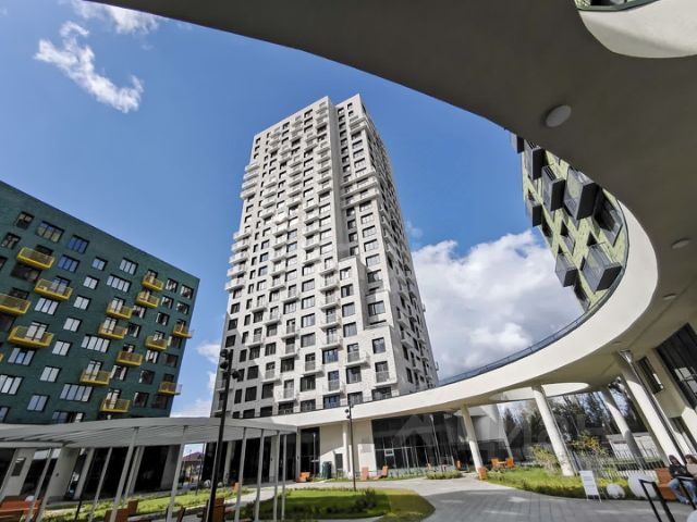 •комплекс предлагает современные технологии: возможность управления домофоном с мобильного телефона и доступ в подъезд по Face ID. Двор оформлен с заботой о жителях, здесь есть современные детские площадки, а в соседнем доме расположен муниципальный детский сад, который по качеству не уступает частным учреждениям.