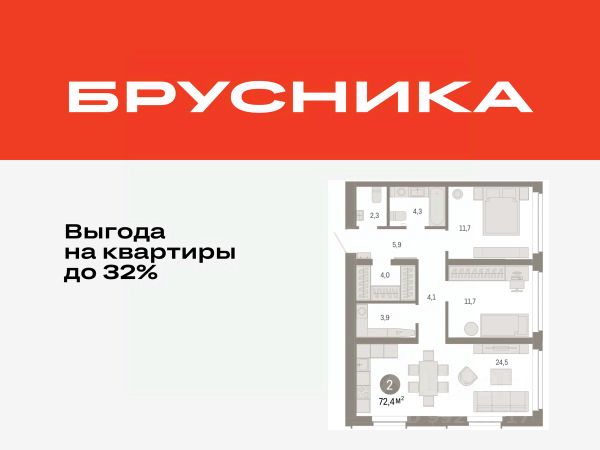 Спешите забронировать по акционной цене! Период предложения ограничен! Стоимость квартиры указана со скидкой, ваша экономия составит 2,410,000 RUB. Квартира в счёт первоначального взноса по программе обмена. Информация по телефону, наши менеджеры вам все расскажут! Продается 2-комн. квартира от застройщика с предчистовой отделкой в ЖК "Республики 205" на 15 этаже. Общая площадь: 82.53 кв.м., жилая: 23.2 кв.м., площадь просторной кухни-гостиной: 24.4 кв.м. Угловая квартира, идеально подойдет любителям тишины и панорамных видов. В квартире один балкон и одна лоджия, два совмещенных санузла. Высота потолков 2.7 м. Купить квартиру можно с помощью программ покупки от застройщика Брусника: - ипотека по эксклюзивной ставке с помощью в получении положительного кредитного решения через сервис ипотечный брокер; - квартиры в рассрочку без процентов от застройщика Брусника; - обмен квартиры на новую. Получить одобрение ипотеки или рассрочку, а также осуществить обмен квартир можно онлайн. Дом монолитный, многоподъездный, переменной этажности, от 7 до 16 этажей. Квартира находится в 3-й секции высотой 16 этажей в корпусе 2. На этаже 7 квартир. В подъезде 2 грузовых лифта. Начало строительства - 1 квартал 2024 года. Окончание строительства - 1 квартал 2026 года. Оформление сделки по договору долевого участия. Район Проект расположен в границах улиц Пермякова, Энергетиков, Воровского и Республики. До центра города — 10 минут на машине. Рядом — автомобильная развязка на пересечении улиц Пермякова и Республики. В шаговой доступности есть школы, детские сады, поликлиники, крупный торговый центр, автовокзал и несколько скверов. Проект "Республики 205" — это проект комплексного развития территории, уникальный по своему наполнению. Переосмысляя бывшую территорию завода медицинского оборудования, мы создадим новое место силы — микрорайон, насыщенный деловой, развлекательной, рекреационной, игровой, образовательной и медицинской инфраструктурой. До каждого полезного сервиса здесь можно будет дойти за 15 минут. Локальными центрами "Республики 205" будут общественные пространства — скверы, парки, бульвары и площади. В границах нашего участка мы намерены разместить школу, рассчитанную на 1550 учеников, два детских сада на 300 мест и встроенный детский сад на 100 мест. В одном из цехов бывшего завода расположится креативный кластер "Кузница". Он станет площадкой для нескольких институций — галереи, лектория, книжного магазина-библиотеки, кинобара и точек креативного pop-up-ритейла. Пешеходные бульвары внутри района соединят между собой улицу ресторанов, детские и спортивные площадки, событийную площадь и летний кинотеатр. Идентификатор квартиры по базе застройщика: РСП-02-3-3. #ZufFlc