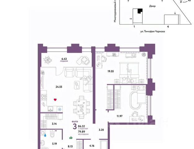В квартирах выполнена качественная предчистовая отделка. Гладкие стены с финишным выравниванием по маякам. Ровный потолок для установки натяжного потолка. Установлены пятикамерные окна с двойным стеклопакетом (3 стекла).