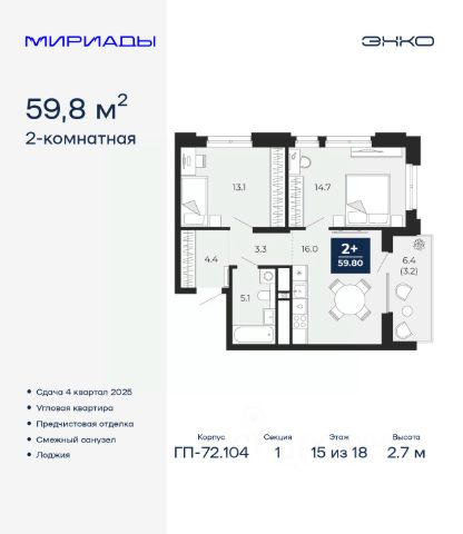 Продается 3-комн. квартира от застройщика с предчистовой отделкой в ЖК "Республики 205" на 15 этаже. Общая площадь: 89.68 кв.м., жилая: 34.2 кв.м., площадь просторной кухни-гостиной: 22.5 кв.м. Угловая квартира, окна oбecпeчивaют paвнoмepнoe ocвeщeниe в тeчeниe дня. В квартире две лоджии, два совмещенных санузла. Высота потолков 2.7 м. Купить квартиру можно с помощью программ покупки от застройщика Брусника: - ипотека по эксклюзивной ставке с помощью в получении положительного кредитного решения через сервис ипотечный брокер; - квартиры в рассрочку без процентов от застройщика Брусника; - обмен квартиры на новую. Получить одобрение ипотеки или рассрочку, а также осуществить обмен квартир можно онлайн. Дом монолитный, многоподъездный, переменной этажности, от 7 до 16 этажей. Квартира находится в 3-й секции высотой 16 этажей в корпусе 2. На этаже 7 квартир. В подъезде 2 грузовых лифта. Начало строительства - 1 квартал 2024 года. Окончание строительства - 1 квартал 2026 года. Оформление сделки по договору долевого участия. Район Проект расположен в границах улиц Пермякова, Энергетиков, Воровского и Республики. До центра города — 10 минут на машине. Рядом — автомобильная развязка на пересечении улиц Пермякова и Республики. В шаговой доступности есть школы, детские сады, поликлиники, крупный торговый центр, автовокзал и несколько скверов. Проект "Республики 205" — это проект комплексного развития территории, уникальный по своему наполнению. Переосмысляя бывшую территорию завода медицинского оборудования, мы создадим новое место силы — микрорайон, насыщенный деловой, развлекательной, рекреационной, игровой, образовательной и медицинской инфраструктурой. До каждого полезного сервиса здесь можно будет дойти за 15 минут. Локальными центрами "Республики 205" будут общественные пространства — скверы, парки, бульвары и площади. В границах нашего участка мы намерены разместить школу, рассчитанную на 1550 учеников, два детских сада на 300 мест и встроенный детский сад на 100 мест. В одном из цехов бывшего завода расположится креативный кластер "Кузница". Он станет площадкой для нескольких институций — галереи, лектория, книжного магазина-библиотеки, кинобара и точек креативного pop-up-ритейла. Пешеходные бульвары внутри района соединят между собой улицу ресторанов, детские и спортивные площадки, событийную площадь и летний кинотеатр. Идентификатор квартиры по базе застройщика: РСП-02-3-3. #z3feFa