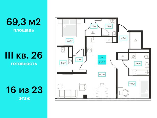 Продаётся 2-комнатная квартира в строящемся доме (ГП-1), срок сдачи: IV-кв. 2028, общей площадью 57.69 кв.м., на 16 этаже. Новый жилой комплекс "Континент" от Специализированного застройщика "Расцвет" расположен по адресу: г. Тюмень, по ул. Червишевский Тракт.