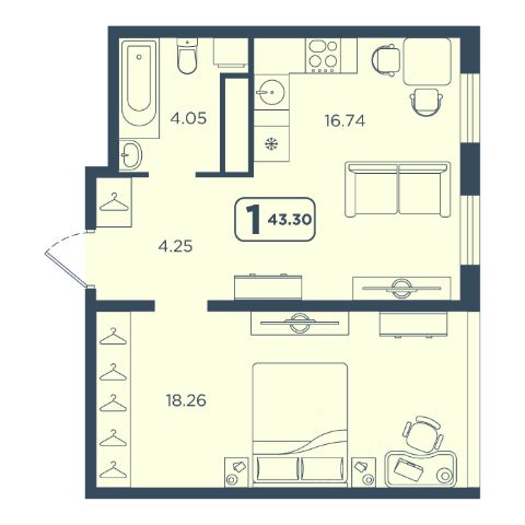 Продаётся 1-комнатная квартира в строящемся доме (ГП-1), срок сдачи: IV-кв. 2028, общей площадью 43.3 кв.м., на 16 этаже. Новый жилой комплекс "Континент" от Специализированного застройщика "Расцвет" расположен по адресу: г. Тюмень, по ул. Червишевский Тракт.