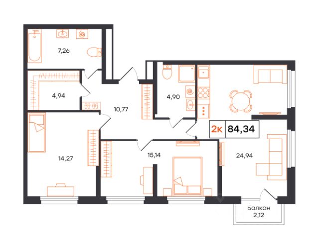 Продается просторная 3-х комнатная квартира 81,8 кв.м.: кухня-гостиная, 3 изолированные комнаты, вместительная прихожая с двумя нишами под большой шкаф и два санузла.