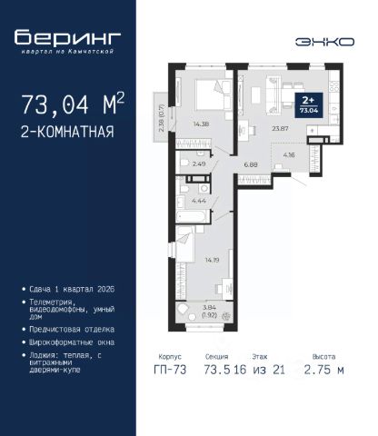 Просторная 1-комн. квартира с предчистовой отделкой в ЖК "Беринг" на 16 этаже. Общая площадь: 39.7 кв.м., жилая: 9.55 кв.м., площадь просторной кухни-столовой: 15.29 кв.м. Все окна выходят на одну сторону. В квартире один балкон и одна лоджия, один совмещенный санузел. Высота потолков 2.75 м. Дом монолитный, многоподъездный, переменной этажности, от 9 до 21 этажей. Квартира находится во 2-й секции высотой 17 этажей в корпусе ГП-74. На этаже 7 квартир. В подъезде 1 пассажирский и 1 грузовой лифт. Окончание строительства - 1 квартал 2026 года. Оформление сделки по договору долевого участия. Подобно знаменитому исследователю, мы чувствуем себя первооткрывателями этой локации. Хотим показать новую суть места, сформировать для вас жизненный опыт, которого ещё не было. Беринг — район зелёного цвета. Беринг — район, который откроется вам с другой стороны. Впечатлит новым уровнем комфорта и качеством жизни. Беринг — открытие на карте города. Первый квартал расположен в районе Тура, в границах улиц: Камчатская Западносибирская Энтузиастов. Вокруг уже есть всё для того, чтобы ежедневная рутина была лишь частью жизни и не доставляла дискомфорта. Школы и детские сады, магазины и аптеки, поликлиника, места для семейного отдыха, пеших и велопрогулок, и даже рыбалки. Масштабное озеленение дворов — визитная карточка ЭНКО и ваш оазис спокойствия, чтобы отвлечься от повседневности. Раскидистые деревья, кустарники, травы и цветы — осталось остановиться, вдохнуть и расслабиться, глядя на эту природную красоту. Стилистика подъездов продолжает концепцию Беринга, вдохновлённого Камчаткой: сдержанный, но при этом впечатляющий дизайн соседствует с удобством и функциональностью. #ZUs5eg