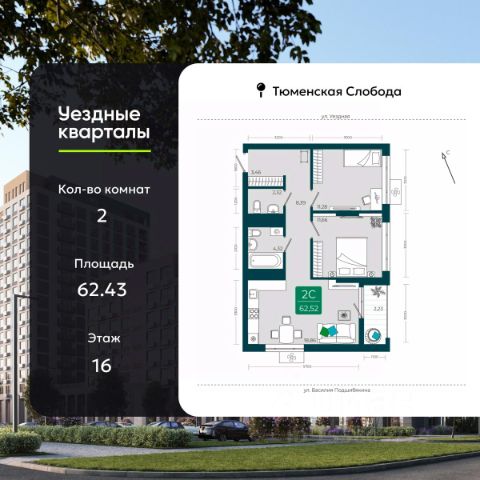 Квартира с кухней-гостиной и двумя спальнями в Октябрьском на Туре. Особенности планировки: балкон, вид во двор, предчистовая отделка, тёплая лоджия. квартиры в нашей базе: КО-07.1-1-1.16.7. Район Проект расположен на берегу реки, в одном из самых живописных и экологичных районов Тюмени. За последние годы облик района изменился. По соседству с индивидуальной застройкой выросли многоквартирные дома. При проектировании "Октябрьского на Туре" нашей приоритетной задачей стало сохранение природного ландшафта: мы постарались деликатно вписать в него современную архитектуру. Квартал удачно расположен с точки зрения дорожной инфраструктуры. На автомобиле путь до центра города составит 15 минут. Добраться до набережной и главных тюменских достопримечательностей можно и на общественном транспорте. В пешей доступности находится автобусная остановка. Проект По мастер-плану здесь будет восемь домов. Ядро застройки составляют замкнутые кварталы переменной этажности. Их высотность понижается по мере приближения к реке. На углах участка мы разместили башни-доминанты. Одной из достопримечательностей квартала станет парк на Туре — здесь появится зеленая зона протяженностью около 6 километров для пеших и велопрогулок. Смысловая ось квартала — широкая главная улица с высаженными вдоль неё высокими деревьями. Они создают тень и работают как шумо- и пылезащитные экраны. Это место сосредоточения основных пешеходных и транспортных потоков, на сторону которых мы ориентировали большинство коммерческих помещений. Отсюда жители могут свернуть на тихие соседские улицы и попасть на внутриквартальную площадь — ещё одну точку притяжения. #2lwA5v
