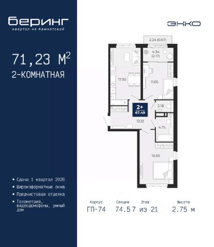 Квартира располагается в ГК "Чистые Пруды" от "Паритет девелопмент". Это флагманский проект компании в Тюмени. Расположение вдали от шумных улиц и оживленного центра создает ощущение жизни на природе и окружает тишиной и спокойствием. Есть вся необходимая социальная и коммерческая инфраструктура: магазины и сфера услуг на первых этажах. Школы, сады, поликлиника, парки в шаговой доступности. Квартал строится в районе Новой Лесобазы. Рядом выезд на объездную, что существенно экономит время. Поездка до центра города на автомобиле занимает 15-20 минут. Городские кварталы "Чистые Пруды" сформирован из домов переменной этажности и многоуровневых паркингов. Ввод 1 очереди строительства запланирован на II кв. 2028 года. Всё благоустройство квартала представлено двумя функциональными зонами: приватная внутри дворовая и общественная. Каждый закрытый двор имеет выход на единую променадную зону - бульвар. Концепция благоустройства основана на принципе модульности, что формирует основную идею приватности. Приватность проекта подчеркивает его особенный климат внутри. Модульное благоустройство позволит максимально эффективно использовать пространство двора и удовлетворить потребности различных категорий жителей. В квартирах базово выполнена улучшенная черновая отделка, которая включает в себя: выровненные стены, стяжка пола с шумоизоляцией, горизонтальная разводка отопления, установлены счетчики с телеметрией, окна с 5-камерным профилем и надежные входные двери. При желании можно добавить ремонт от застройщика и включить его в стоимость ипотеки, что позволит сэкономить на стройматериалах и переехать сразу после получения ключей. Характеристики квартиры: этаж - 16 количество комнат - 2 номер помещения - 433 площадь квартиры - 40,4 кв.мГармоничные пропорции и большие окна наполняют пространство светом, создавая уютную атмосферу. Умное зонирование позволяет удобно организовать как рабочую, так и жилую зоны, что особенно важно для современных жителей. Санузел спроектирован с учетом всех потребностей: здесь есть ванна и место для стиральной машины. Каждый метр квартиры используется с максимальной эффективностью, что делает эту планировку отличным выбором для тех, кто ценит комфорт и удобство.