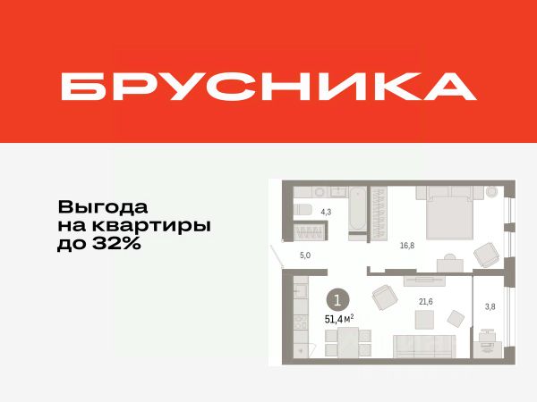 Эксклюзивные ипотечные условия. Квартира в рассрочку без процентов от застройщика. Обмен квартиры на новую. Предложение от застройщика. Квартира в счёт первоначального взноса по программе обмена. Дом будет сдан в 4 квартале 2025 года. Звоните, наши менеджеры вам все расскажут! Продается 1-комн. квартира от застройщика с предчистовой отделкой в ЖК "Республики 205" на 16 этаже. Общая площадь: 51.45 кв.м., жилая: 16.8 кв.м., площадь просторной кухни-гостиной: 21.6 кв.м. Все окна выходят на одну сторону. В квартире одна лоджия, один совмещенный санузел. Высота потолков 2.6 м. Купить квартиру можно с помощью программ покупки от застройщика Брусника: - ипотека по эксклюзивной ставке с помощью в получении положительного кредитного решения через сервис ипотечный брокер; - квартиры в рассрочку без процентов от застройщика Брусника; - обмен квартиры на новую. Получить одобрение ипотеки или рассрочку, а также осуществить обмен квартир можно онлайн. Дом монолитный, многоподъездный, переменной этажности, от 9 до 17 этажей. Квартира находится в 1-й секции высотой 17 этажей в корпусе 1. На этаже 7 квартир. В подъезде 1 пассажирский и 1 грузовой лифт. Начало строительства - 2 квартал 2023 года. Окончание строительства - 4 квартал 2025 года. Оформление сделки по договору долевого участия. Район Проект расположен в границах улиц Пермякова, Энергетиков, Воровского и Республики. До центра города — 10 минут на машине. Рядом — автомобильная развязка на пересечении улиц Пермякова и Республики. В шаговой доступности есть школы, детские сады, поликлиники, крупный торговый центр, автовокзал и несколько скверов. Проект "Республики 205" — это проект комплексного развития территории, уникальный по своему наполнению. Переосмысляя бывшую территорию завода медицинского оборудования, мы создадим новое место силы — микрорайон, насыщенный деловой, развлекательной, рекреационной, игровой, образовательной и медицинской инфраструктурой. До каждого полезного сервиса здесь можно будет дойти за 15 минут. Локальными центрами "Республики 205" будут общественные пространства — скверы, парки, бульвары и площади. В границах нашего участка мы намерены разместить школу, рассчитанную на 1550 учеников, два детских сада на 300 мест и встроенный детский сад на 100 мест. В одном из цехов бывшего завода расположится креативный кластер "Кузница". Он станет площадкой для нескольких институций — галереи, лектория, книжного магазина-библиотеки, кинобара и точек креативного pop-up-ритейла. Пешеходные бульвары внутри района соединят между собой улицу ресторанов, детские и спортивные площадки, событийную площадь и летний кинотеатр. Идентификатор квартиры по базе застройщика: МЕД01-01-1-1. #2M21aW
