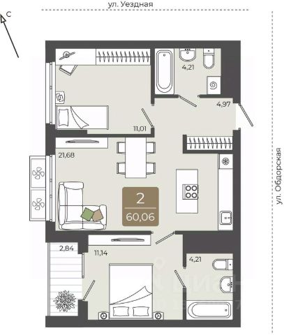 Двухкомнатная квартира от застройщика с предчистовой отделкой в ЖК "Прео" на 15 этаже. Общая площадь: 63.22 кв.м., жилая: 25.19 кв.м., площадь просторной кухни-столовой: 17.92 кв.м. Угловая квартира, идеально подойдет любителям тишины и панорамных видов. В квартире одна лоджия, один совмещенный и один раздельный санузел. Высота потолков 2.7 м.