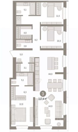 4-комн. квартира с предчистовой отделкой в Кварталы "На Минской" на 2 этаже. Общая площадь: 152.95 кв.м. Высота потолков 2.7 м. Дом монолитный, многоподъездный, переменной этажности, от 7 до 11 этажей. Квартира находится в 9-й секции высотой 7 этажей в корпусе 2. На этаже 7 квартир. В подъезде 1 пассажирский и 1 грузовой лифт. Окончание строительства - 1 квартал 2027 года. Оформление сделки по договору долевого участия. Квартира с кухней-гостиной и четырьмя спальнями в кварталах "На Минской". Особенности планировки: вид во двор, второй санузел, гардеробная, окна в пол, окна на две стороны, панорамное остекление, потолки 3 м и выше, предчистовая отделка, разнесённые спальни, терраса. квартиры в нашей базе: МНС02-Ж9.2.5. В сердце города Кварталы "На Минской" находятся в самом центре. За десять минут можно дойти до площади 400-летия Тюмени и Большого Драматического театра, Тюменского индустриального и медицинского университетов, спортивного комплекса "Строймаш", ТРЦ "Гудвин" и "Премьер", Тюменского технопарка. Поблизости много детских садов, школ и поликлиник. Пространство разного опыта Создавая кварталы "На Минской" мы вдохновлялись Хакскими дворами в Берлине и улицей Давида Агмашенебели в Тбилиси. И первые и вторая — яркие разнообразные пространства, сформированные прогрессивными архитекторами и притягивающие городских интеллектуалов. Престижная недвижимость здесь соседствует с барами, ресторанами, креативными кластерами и бюро, дизайнерскими лавками. Полезные улицы Кварталы "На Минской" свяжет сеть променадов, автомобильных проездов и велодорожек. Уличный фронт проекта мы сформируем с помощью аллейной посадки деревьев. Они создадут тень для ресторанов и кафе на первых этажах, визуально отделят проезжую и пешеходную части, снизят объём пыли и уровень шума. Мы реализуем проект в районе с развитой базовой инфраструктурой. И поэтому тщательно подошли к программированию коммерции, посчитав, что её основная задача — "закрывать" более высокие потребности жителей. Здесь может появиться пекарня с вкусными круассанами, турагентство на случай, если захочется перезимовать в Сочи, массажный кабинет, ресторан, когда надоело есть дома и многое другое. #zsZaWA