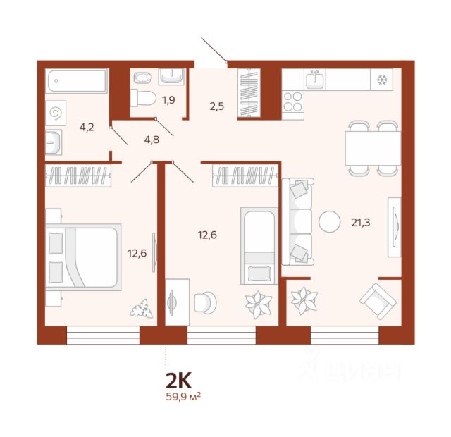 Продаётся 3-комнатная квартира в строящемся доме (ГП-1 (Новаторов, 28)), срок сдачи: IV-кв. 2025, общей площадью 70.6 кв.м., на 2 этаже. Новый жилой комплекс "Новатор" от застройщика ГК "СБК" расположен по адресу: г. Тюмень по ул. Новаторов.