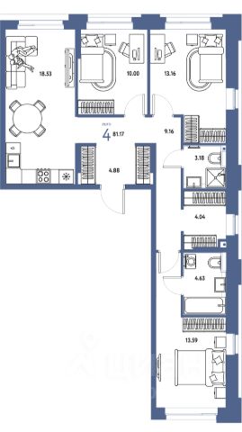• ✓ В базе Циан 53 квартир на 2 этаже в микрорайоне Гольф-палас в городе Тюмень