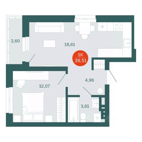 Кухня-гостиная: 22 м² — сердце квартиры, где удобно принимать гостей и наслаждаться уютными семейными вечерами.
