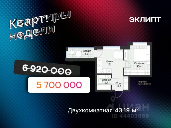 Дом монолитный, трехподъездный, высотой 10 этажей. Квартира находится в 3-й секции в корпусе ГП-7. На этаже 5 квартир. В подъезде 1 пассажирский и 1 грузовой лифт. Окончание строительства - 2 квартал 2026 года. Оформление сделки по договору долевого участия.