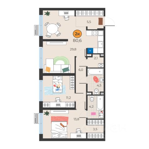 -Комфортная планировка с большой кухней-гостиной !