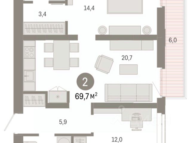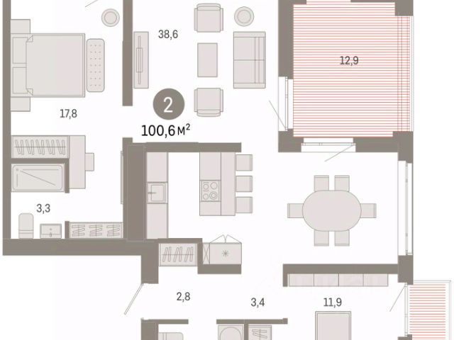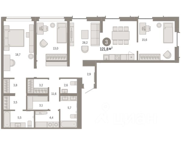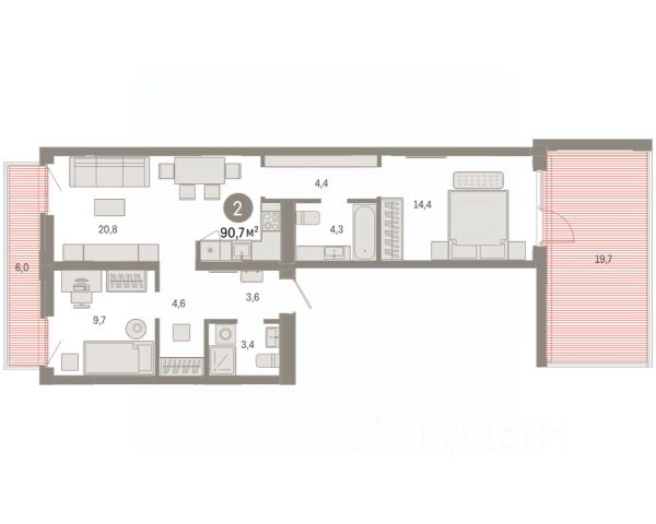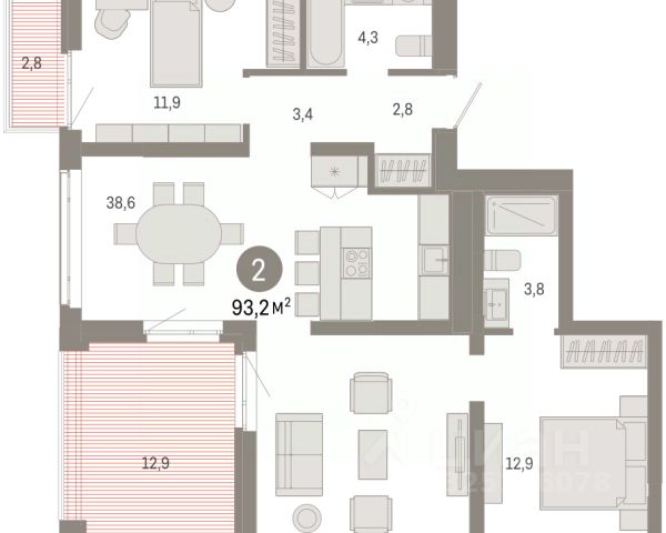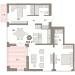 3-комн. квартира с предчистовой отделкой в ЖК "Республики 205" на 2 этаже. Общая площадь: 87.88 кв.м., жилая: 32.6 кв.м., площадь просторной кухни-гостиной: 22.4 кв.м. Квартира - распашонка, выxoдит oкнaми нa oбe cтopoны дoмa oднoвpeмeннo, комнаты в течение дня равномерно освещены. В квартире три балкона, два совмещенных санузла. Высота потолков 2.7 м. Купить квартиру можно с помощью программ покупки от застройщика Брусника: - ипотека по эксклюзивной ставке с помощью в получении положительного кредитного решения через сервис ипотечный брокер; - квартиры в рассрочку без процентов от застройщика Брусника; - обмен квартиры на новую. Получить одобрение ипотеки или рассрочку, а также осуществить обмен квартир можно онлайн. Дом монолитный, многоподъездный, переменной этажности, от 7 до 16 этажей. Квартира находится в 6-й секции высотой 7 этажей в корпусе 2. На этаже 6 квартир. В подъезде 1 грузовой лифт. Начало строительства - 1 квартал 2024 года. Окончание строительства - 2 квартал 2026 года. Оформление сделки по договору долевого участия. Район Проект расположен в границах улиц Пермякова, Энергетиков, Воровского и Республики. До центра города — 10 минут на машине. Рядом — автомобильная развязка на пересечении улиц Пермякова и Республики. В шаговой доступности есть школы, детские сады, поликлиники, крупный торговый центр, автовокзал и несколько скверов. Проект "Республики 205" — это проект комплексного развития территории, уникальный по своему наполнению. Переосмысляя бывшую территорию завода медицинского оборудования, мы создадим новое место силы — микрорайон, насыщенный деловой, развлекательной, рекреационной, игровой, образовательной и медицинской инфраструктурой. До каждого полезного сервиса здесь можно будет дойти за 15 минут. Локальными центрами "Республики 205" будут общественные пространства — скверы, парки, бульвары и площади. В границах нашего участка мы намерены разместить школу, рассчитанную на 1550 учеников, два детских сада на 300 мест и встроенный детский сад на 100 мест. В одном из цехов бывшего завода расположится креативный кластер "Кузница". Он станет площадкой для нескольких институций — галереи, лектория, книжного магазина-библиотеки, кинобара и точек креативного pop-up-ритейла. Пешеходные бульвары внутри района соединят между собой улицу ресторанов, детские и спортивные площадки, событийную площадь и летний кинотеатр. Идентификатор квартиры по базе застройщика: РСП-02-6-6. #zuFf2E