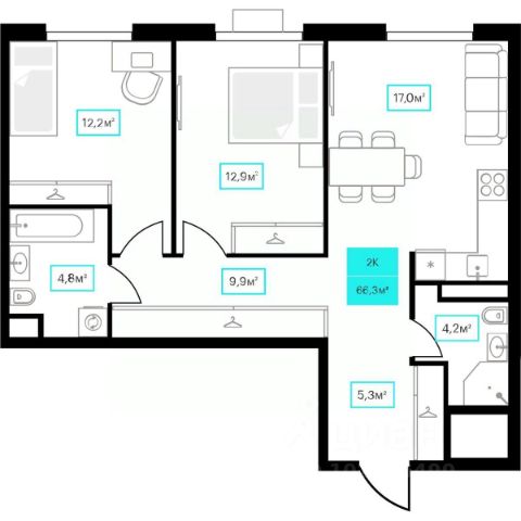 Продаётся 2-комнатная квартира в строящемся доме (ГП-1), срок сдачи: IV-кв. 2028, общей площадью 59.82 кв.м., на 4 этаже. Новый жилой комплекс "Континент" от Специализированного застройщика "Расцвет" расположен по адресу: г. Тюмень, по ул. Червишевский Тракт.