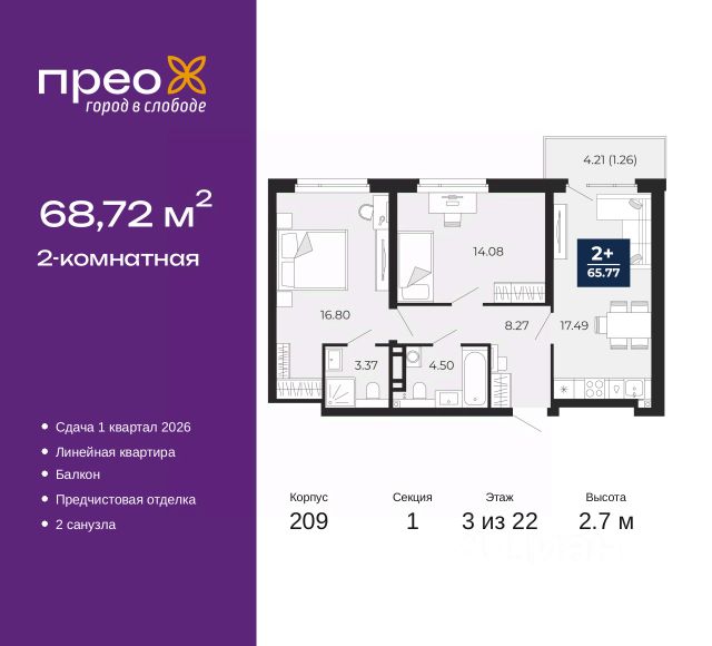 • ✓ В базе Циан 5 квартир на 4 этаже в микрорайоне Дударева в городе Тюмень