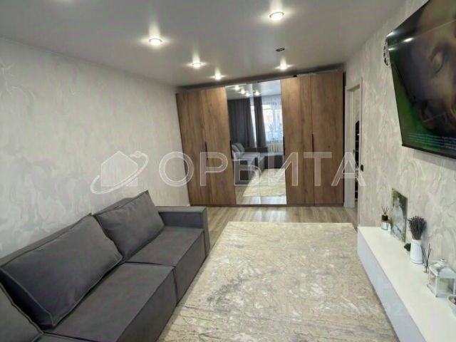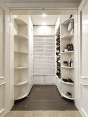 Планировка квартиры включает кухню, соединенную с гостиной, две спальни, одна из которых может быть детской комнатой, а также прихожую с гардеробной, разде