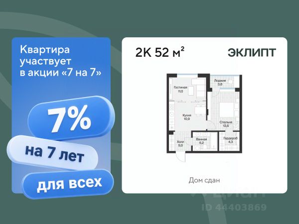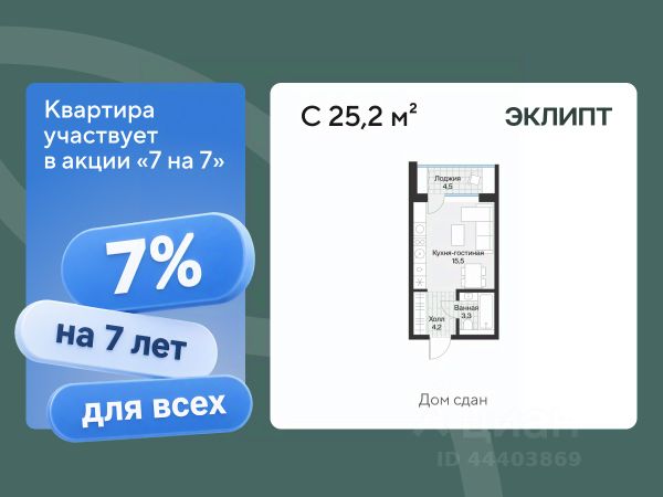 Продаётся квартира площадью 25.4 м2 в жилом комплексе "Айрис".