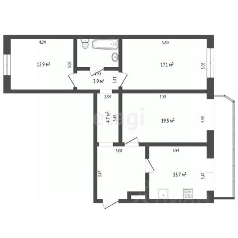 Планировка рациональная: выделина зона отдыха, кухонный блок, а также рабочая зона, что делает квартиру удобной для жизни.