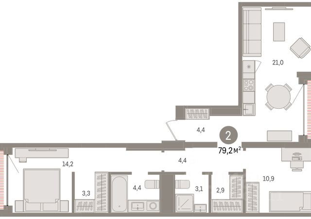 Продается двухкомнатная квартира с предчистовой отделкой в ЖК "Дом у озера" на 4 этаже. Общая площадь: 90.8 кв.м. Высота потолков 2.7 м. Дом монолитный, многоподъездный, переменной этажности, от 2 до 8 этажей. Квартира находится в 4-й секции высотой 8 этажей в корпусе 3. На этаже 5 квартир. В подъезде 1 грузовой лифт. Окончание строительства - 2 квартал 2027 года. Оформление сделки по договору долевого участия. Продаётся с паркингом. Квартира с кухней-гостиной и двумя спальнями в Доме у озера. Особенности планировки: вид во двор, гардеробная, лоджия, мастер-спальня, предчистовая отделка, разнесённые спальни. квартиры в нашей базе: ДМУ03-Ж4.4.6. "Дом у озера" является продолжением "Европейского квартала". Он расположен в центре заречного района города. В 2030 году здесь появится квартал, состоящий из урбан-вилл, таунхаусов, секционных домов и башни. Вокруг уже сформирована необходимая инфраструктура: детские сады, школы, спортивный комплекс, продуктовые магазины, аптеки, кофейни, рестораны и салоны красоты. Путь до центра города занимает 7 минут на машине. Озеро Тихое — ценный рекреационный ресурс. Брусника вернула ему прежнее значение и сделала новой точкой притяжения для жителей микрорайона. Ключевым элементом концепции благоустройства стала вода. В каждой части квартала архитекторы нашли для нее свою форму. Вдоль пешеходных улиц разместили искусственные ручьи, на центральной площади — фонтан и дождевые сады. Основная точка притяжения жителей — озеро и выходящий на его сторону променад. Здесь мы организуем смотровые площадки и расположим летние террасы кафе и ресторанов. Тесную связь застройки с ландшафтом обеспечивает многоуровневое озеленение. Буфер из деревьев и кустарников по периметру квартала превращается в естественный ветрозащитный экран. Такое решение позволяет создать на территории "Дома у озера" комфортный микроклимат. Подъезды "Дома у озера" с прозрачными входными группами и большими лифтами. Для мест общего пользования архитекторы разработали новую интерьерную коллекцию, вдохновленную эклектичными восточными мотивами. В отделке сочетаются коричневый, желтый и белый цвета, повторяющие колористические решения фасадов. Декоративные перегородки, установленные в лобби, напоминают машрабию — элемент арабской архитектуры в виде узорной решетки. За счет мягкой мебели, многоуровневого освещения теплых оттенков и предметов декора (например, зеркал и картин) холлы воспринимаются как продолжение квартиры. #z6gUMI