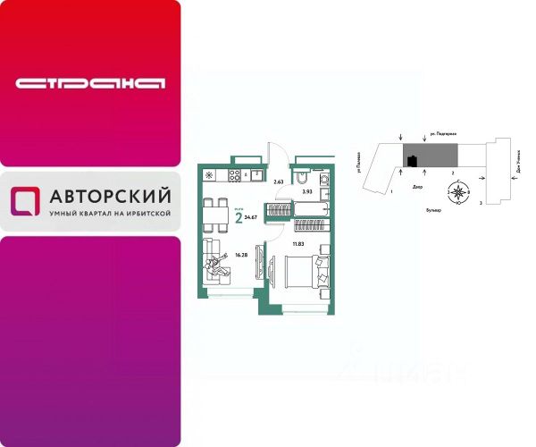 Новая квартира в ЖК "Авторский" напрямую от федерального застройщика "Страна Девелопмент". Продается 2комнатная квартира на 4 этаже от застройщика Страна Девелопмент. Площадь квартиры 44,52 кв. м. Жилой комплекс "Авторский" — квартал для авторов своей жизни от федерального застройщика "Страна Девелопмент" вблизи исторического центра — до Моста Влюблённых 4 минуты на авто, а ещё рядом ведущие вузы Тюмени. Преимущества • Тематический бульвар объединяет дома и закрытые дворы квартала в единую экосистему: зелень, перголы для отдыха, детские и спортивные площадки. По вечерам бульвар преображается: освещение создаёт уютную атмосферу. • Новый детский сад рядом, который появится в 2026 году прямо в одном из корпусов комплекса. В нём выделено 150 мест для малышей. • Во дворах нет машин, шума, выхлопных газов и посторонних людей. Всё пространство разделено на зоны по интересам и возрастам. Для детей — игровые площадки из эко-материалов и мягкая защита от падений. Для взрослых — зоны отдыха, воркаут-площадки и тропинки для неспешных прогулок. Отделка Квартиры сдаются с предчистовой отделкой: произведена разводка электричества и отопления, выполнена стяжка пола, стены выровнены "под маяк", установлены радиаторы. Способы покупки Сотрудники "Страна Девелопмент" будут сопровождать вас на каждом этапе сделки, помогут получить одобрение по ипотеке или снизить ежемесячный платеж. - ипотека - рассрочка - с использованием материнского капитала -100% оплата наличными
