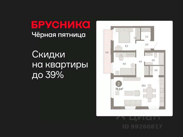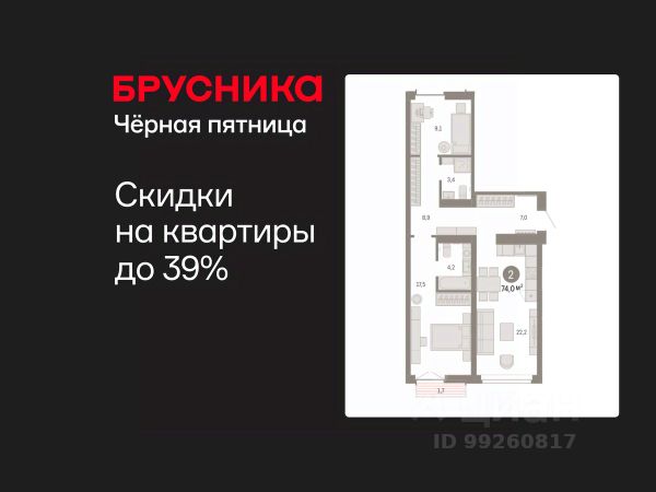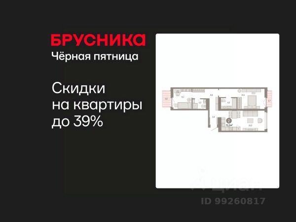 Квартира в счёт первоначального взноса по программе обмена. По всем вопросам звоните в офис продаж, наши менеджеры вам все расскажут! 2-комн. квартира с предчистовой отделкой в ЖК "Республики 205" на 4 этаже. Общая площадь: 72.1 кв.м., жилая: 26.6 кв.м., площадь просторной кухни-гостиной: 22.2 кв.м. Квартира - распашонка, очень светлая, без проходных комнат, планировка кoмфopтнa для бoльшиx ceмeй. В квартире два совмещенных санузла. Высота потолков 2.7 м. Купить квартиру можно с помощью программ покупки от застройщика Брусника: - ипотека по эксклюзивной ставке с помощью в получении положительного кредитного решения через сервис ипотечный брокер; - квартиры в рассрочку без процентов от застройщика Брусника; - обмен квартиры на новую. Получить одобрение ипотеки или рассрочку, а также осуществить обмен квартир можно онлайн. Дом монолитный, многоподъездный, переменной этажности, от 7 до 16 этажей. Квартира находится в 7-й секции высотой 7 этажей в корпусе 2. На этаже 6 квартир. В подъезде 1 грузовой лифт. Начало строительства - 1 квартал 2024 года. Окончание строительства - 1 квартал 2026 года. Оформление сделки по договору долевого участия. Район Проект расположен в границах улиц Пермякова, Энергетиков, Воровского и Республики. До центра города — 10 минут на машине. Рядом — автомобильная развязка на пересечении улиц Пермякова и Республики. В шаговой доступности есть школы, детские сады, поликлиники, крупный торговый центр, автовокзал и несколько скверов. Проект "Республики 205" — это проект комплексного развития территории, уникальный по своему наполнению. Переосмысляя бывшую территорию завода медицинского оборудования, мы создадим новое место силы — микрорайон, насыщенный деловой, развлекательной, рекреационной, игровой, образовательной и медицинской инфраструктурой. До каждого полезного сервиса здесь можно будет дойти за 15 минут. Локальными центрами "Республики 205" будут общественные пространства — скверы, парки, бульвары и площади. В границах нашего участка мы намерены разместить школу, рассчитанную на 1550 учеников, два детских сада на 300 мест и встроенный детский сад на 100 мест. В одном из цехов бывшего завода расположится креативный кластер "Кузница". Он станет площадкой для нескольких институций — галереи, лектория, книжного магазина-библиотеки, кинобара и точек креативного pop-up-ритейла. Пешеходные бульвары внутри района соединят между собой улицу ресторанов, детские и спортивные площадки, событийную площадь и летний кинотеатр. Идентификатор квартиры по базе застройщика: РСП-02-7-7. #ZsM9Mm