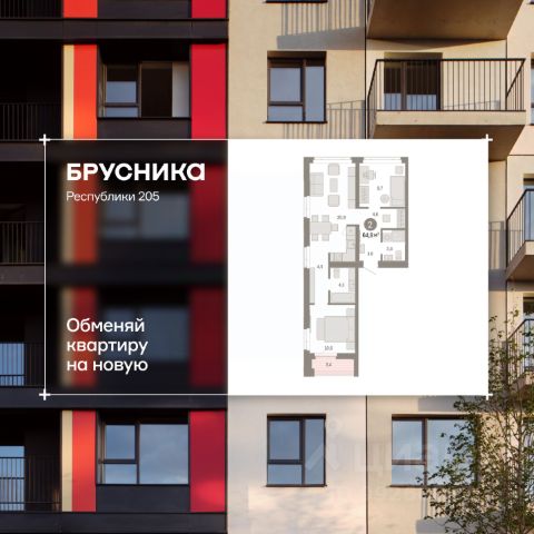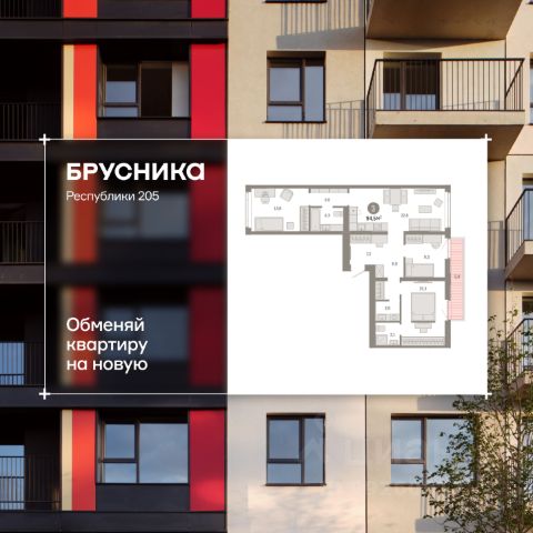 Трехкомнатная квартира с предчистовой отделкой в ЖК "Республики 205" на 4 этаже. Общая площадь: 87.82 кв.м., жилая: 32.6 кв.м., площадь просторной кухни-гостиной: 22.4 кв.м. Квартира - распашонка, без проходных комнат, окна выходят на paзные стороны дома. В квартире три балкона, два совмещенных санузла. Высота потолков 2.7 м. Купить квартиру можно с помощью программ покупки от застройщика Брусника: - ипотека по эксклюзивной ставке с помощью в получении положительного кредитного решения через сервис ипотечный брокер; - квартиры в рассрочку без процентов от застройщика Брусника; - обмен квартиры на новую. Получить одобрение ипотеки или рассрочку, а также осуществить обмен квартир можно онлайн. Дом монолитный, многоподъездный, переменной этажности, от 7 до 16 этажей. Квартира находится в 6-й секции высотой 7 этажей в корпусе 2. На этаже 6 квартир. В подъезде 1 грузовой лифт. Начало строительства - 1 квартал 2024 года. Окончание строительства - 2 квартал 2026 года. Оформление сделки по договору долевого участия. Район Проект расположен в границах улиц Пермякова, Энергетиков, Воровского и Республики. До центра города — 10 минут на машине. Рядом — автомобильная развязка на пересечении улиц Пермякова и Республики. В шаговой доступности есть школы, детские сады, поликлиники, крупный торговый центр, автовокзал и несколько скверов. Проект "Республики 205" — это проект комплексного развития территории, уникальный по своему наполнению. Переосмысляя бывшую территорию завода медицинского оборудования, мы создадим новое место силы — микрорайон, насыщенный деловой, развлекательной, рекреационной, игровой, образовательной и медицинской инфраструктурой. До каждого полезного сервиса здесь можно будет дойти за 15 минут. Локальными центрами "Республики 205" будут общественные пространства — скверы, парки, бульвары и площади. В границах нашего участка мы намерены разместить школу, рассчитанную на 1550 учеников, два детских сада на 300 мест и встроенный детский сад на 100 мест. В одном из цехов бывшего завода расположится креативный кластер "Кузница". Он станет площадкой для нескольких институций — галереи, лектория, книжного магазина-библиотеки, кинобара и точек креативного pop-up-ритейла. Пешеходные бульвары внутри района соединят между собой улицу ресторанов, детские и спортивные площадки, событийную площадь и летний кинотеатр. Идентификатор квартиры по базе застройщика: РСП-02-6-6. #23fFi5