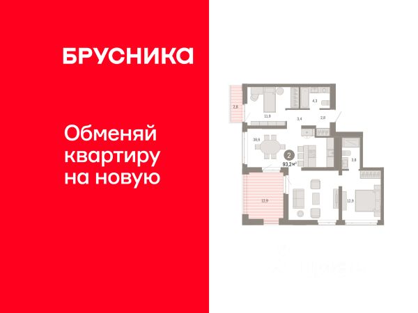 Квартира в рассрочку без процентов от застройщика. Эксклюзивные ипотечные условия. Дом будет сдан в 4 квартале 2025 года. Звоните, мы вам все подробно расскажем. Продается четырехкомнатная квартира с предчистовой отделкой в ЖК "Республики 205" на 4 этаже. Общая площадь: 138.11 кв.м., жилая: 51.6 кв.м., площадь просторной кухни-гостиной: 38 кв.м. Квартира без проходных комнат, окна выходят нa три cтopoны дома. В квартире две лоджии, три совмещенных санузла. Высота потолков 2.6 м. Купить квартиру можно с помощью программ покупки от застройщика Брусника: - ипотека по эксклюзивной ставке с помощью в получении положительного кредитного решения через сервис ипотечный брокер; - квартиры в рассрочку без процентов от застройщика Брусника; - обмен квартиры на новую. Получить одобрение ипотеки или рассрочку, а также осуществить обмен квартир можно онлайн. Дом монолитный, многоподъездный, переменной этажности, от 9 до 17 этажей. Квартира находится в 6-й секции высотой 15 этажей в корпусе 1. На этаже 7 квартир. В подъезде 1 пассажирский и 1 грузовой лифт. Начало строительства - 2 квартал 2023 года. Строительство окончено, дом сдан в 4 квартале 2025 года. Оформление сделки по договору купли-продажи. Район Проект расположен в границах улиц Пермякова, Энергетиков, Воровского и Республики. До центра города — 10 минут на машине. Рядом — автомобильная развязка на пересечении улиц Пермякова и Республики. В шаговой доступности есть школы, детские сады, поликлиники, крупный торговый центр, автовокзал и несколько скверов. Проект "Республики 205" — это проект комплексного развития территории, уникальный по своему наполнению. Переосмысляя бывшую территорию завода медицинского оборудования, мы создадим новое место силы — микрорайон, насыщенный деловой, развлекательной, рекреационной, игровой, образовательной и медицинской инфраструктурой. До каждого полезного сервиса здесь можно будет дойти за 15 минут. Локальными центрами "Республики 205" будут общественные пространства — скверы, парки, бульвары и площади. В границах нашего участка мы намерены разместить школу, рассчитанную на 1550 учеников, два детских сада на 300 мест и встроенный детский сад на 100 мест. В одном из цехов бывшего завода расположится креативный кластер "Кузница". Он станет площадкой для нескольких институций — галереи, лектория, книжного магазина-библиотеки, кинобара и точек креативного pop-up-ритейла. Пешеходные бульвары внутри района соединят между собой улицу ресторанов, детские и спортивные площадки, событийную площадь и летний кинотеатр. Идентификатор квартиры по базе застройщика: МЕД01-01-6-6. #zI9I71