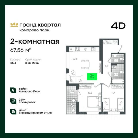 Продаётся квартира площадью 63.94 м2 в жилом комплексе "Дабл-Дабл". Квартира находится на 4 этаже, жилая площадь квартиры 26.06 м2, площадь просторной кухни — 15.57 м2. Среди особенностей планировки — изолированные комнаты с окнами на одну сторону, 1 совмещённый санузел. Срок сдачи — II кв. 2028 Жилой комплекс "Дабл-Дабл" — это: - проект комфорт-класса на Московском тракте - дома высотой 15 этажей - квартиры от 1-комнатных до 2-уровневых Окружение На границе жилого комплекса — живописный лес. Достаточно открыть окна, чтобы впустить в комнаты ароматы зелени, прохладу и чистый воздух. Благоустройство Юные жители оценят игровые площадки и воркаут-зоны. Любителям неспешных прогулок понравится 2-уровневый променад с панорамным видом и навесами. Лобби Помещения встречают дизайнерскими интерьерами с уютными лаунж-зонами, где удобно подождать курьера или просто сделать паузу перед возвращением домой. Колясочные Возвращайтесь налегке после прогулки с малышом — оставить коляску можно в специальном помещении на первом этаже. Кладовые Благодаря индивидуальным помещениям на техническом этаже сезонные и габаритные вещи будут на своём месте. 2-уровневые квартиры Просторная гостиная и кухня располагаются на первом этаже, спальня и кабинет — на втором. Почувствуйте, как жизнь выходит на новый уровень комфорта и приватности. Панорамное остекление Окна в пол наполняют комнаты светом и стирают границы между домом и природой. Встречайте рассветы или наслаждайтесь огнями вечернего города. Отделка Ровные стены, подготовленные полы и проведённые коммуникации — мы взяли на себя самые грязные и трудоёмкие этапы ремонта. Квартира станет чистым холстом, где легко создать интерьер в любом стиле. Продается квартира на 4 этаже в Тюменской области.