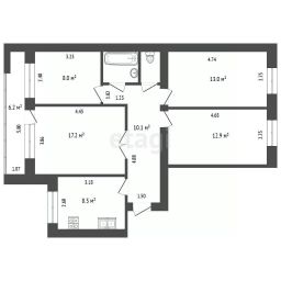 Однокомнатная квартира с предчистовой отделкой в ЖК "Республики 205" на 4 этаже. Общая площадь: 45.89 кв.м., жилая: 12.1 кв.м., площадь просторной кухни-гостиной: 20.8 кв.м. Все окна выходят на одну сторону. В квартире один балкон, один совмещенный санузел. Высота потолков 2.7 м.