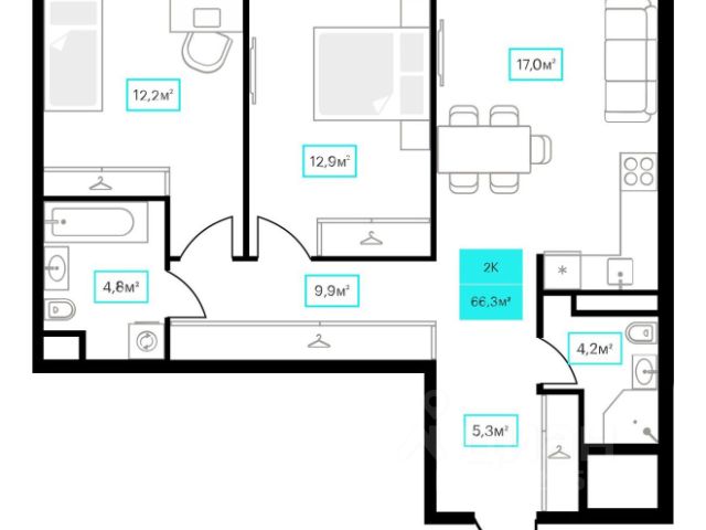 Продаётся 2-комнатная квартира в строящемся доме (ГП-1), срок сдачи: IV-кв. 2028, общей площадью 57.06 кв.м., на 5 этаже. Новый жилой комплекс "Континент" от Специализированного застройщика "Расцвет" расположен по адресу: г. Тюмень, по ул. Червишевский Тракт.