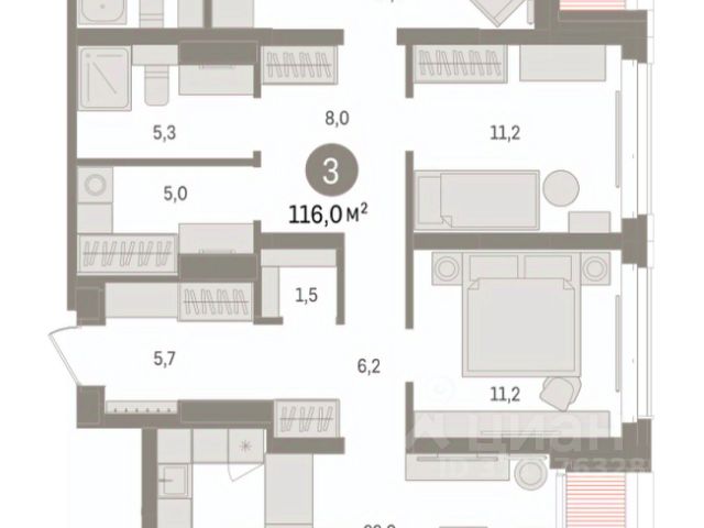 2-комн. квартира с предчистовой отделкой в Кварталы "На Минской" на 5 этаже. Общая площадь: 77.05 кв.м., жилая: 25.2 кв.м., площадь просторной кухни-гостиной: 30.2 кв.м. Квартира угловая, окна oбecпeчивaют paвнoмepнoe ocвeщeниe в тeчeниe дня. В квартире один балкон, два совмещенных санузла. Высота потолков 2.7 м. Дом монолитный, многоподъездный, переменной этажности, от 7 до 11 этажей. Квартира находится в 1-й секции высотой 7 этажей в корпусе 2. На этаже 6 квартир. В подъезде 1 пассажирский и 1 грузовой лифт. Окончание строительства - 1 квартал 2027 года. Оформление сделки по договору долевого участия. Квартира с кухней-гостиной и двумя спальнями в кварталах "На Минской". Особенности планировки: балкон, вид во двор, второй санузел, предчистовая отделка. квартиры в нашей базе: МНС02-Ж1.5.2. В сердце города Кварталы "На Минской" находятся в самом центре. За десять минут можно дойти до площади 400-летия Тюмени и Большого Драматического театра, Тюменского индустриального и медицинского университетов, спортивного комплекса "Строймаш", ТРЦ "Гудвин" и "Премьер", Тюменского технопарка. Поблизости много детских садов, школ и поликлиник. Пространство разного опыта Создавая кварталы "На Минской" мы вдохновлялись Хакскими дворами в Берлине и улицей Давида Агмашенебели в Тбилиси. И первые и вторая — яркие разнообразные пространства, сформированные прогрессивными архитекторами и притягивающие городских интеллектуалов. Престижная недвижимость здесь соседствует с барами, ресторанами, креативными кластерами и бюро, дизайнерскими лавками. Полезные улицы Кварталы "На Минской" свяжет сеть променадов, автомобильных проездов и велодорожек. Уличный фронт проекта мы сформируем с помощью аллейной посадки деревьев. Они создадут тень для ресторанов и кафе на первых этажах, визуально отделят проезжую и пешеходную части, снизят объём пыли и уровень шума. Мы реализуем проект в районе с развитой базовой инфраструктурой. И поэтому тщательно подошли к программированию коммерции, посчитав, что её основная задача — "закрывать" более высокие потребности жителей. Здесь может появиться пекарня с вкусными круассанами, турагентство на случай, если захочется перезимовать в Сочи, массажный кабинет, ресторан, когда надоело есть дома и многое другое. #z52a3z
