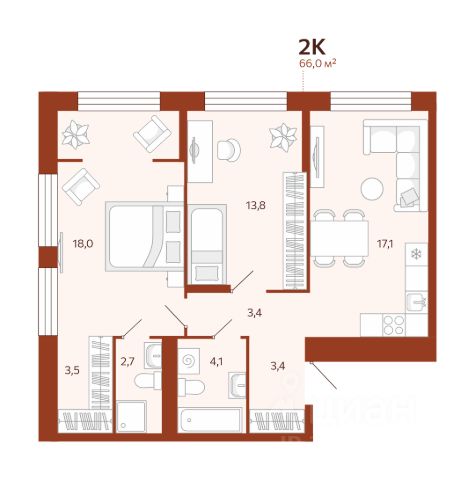 Продаётся 2-комнатная квартира в строящемся доме (ГП-2 (Новаторов, 30)), срок сдачи: II-кв. 2026, общей площадью 59.84 кв.м., на 5 этаже. Новый жилой комплекс "Новатор" от застройщика ГК "СБК" расположен по адресу: г. Тюмень по ул. Новаторов.