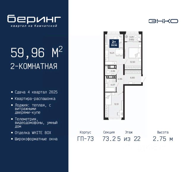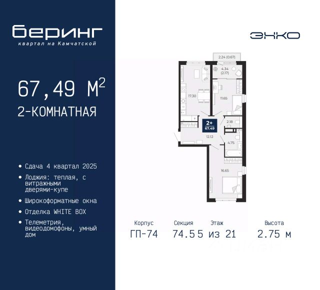 1-комн. квартира от застройщика в ЖК "Беринг" на 5 этаже. Квартира без отделки, полностью готова к чистовой отделке и дальнейшему ремонту. Общая площадь: 41.38 кв.м., жилая: 12.69 кв.м., площадь просторной кухни-столовой: 16.37 кв.м. Все окна выходят на одну сторону. В квартире одна лоджия, один совмещенный санузел. Высота потолков 2.75 м. Дом монолитный, многоподъездный, переменной этажности, от 9 до 21 этажей. Квартира находится в 3-й секции высотой 9 этажей в корпусе ГП-74. На этаже 7 квартир. В подъезде 1 грузовой лифт. Окончание строительства - 4 квартал 2025 года. Оформление сделки по договору долевого участия. Подобно знаменитому исследователю, мы чувствуем себя первооткрывателями этой локации. Хотим показать новую суть места, сформировать для вас жизненный опыт, которого ещё не было. Беринг — район зелёного цвета. Беринг — район, который откроется вам с другой стороны. Впечатлит новым уровнем комфорта и качеством жизни. Беринг — открытие на карте города. Первый квартал расположен в районе Тура, в границах улиц: Камчатская Западносибирская Энтузиастов. Вокруг уже есть всё для того, чтобы ежедневная рутина была лишь частью жизни и не доставляла дискомфорта. Школы и детские сады, магазины и аптеки, поликлиника, места для семейного отдыха, пеших и велопрогулок, и даже рыбалки. Масштабное озеленение дворов — визитная карточка ЭНКО и ваш оазис спокойствия, чтобы отвлечься от повседневности. Раскидистые деревья, кустарники, травы и цветы — осталось остановиться, вдохнуть и расслабиться, глядя на эту природную красоту. Стилистика подъездов продолжает концепцию Беринга, вдохновлённого Камчаткой: сдержанный, но при этом впечатляющий дизайн соседствует с удобством и функциональностью. #z35MlV