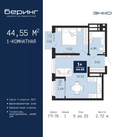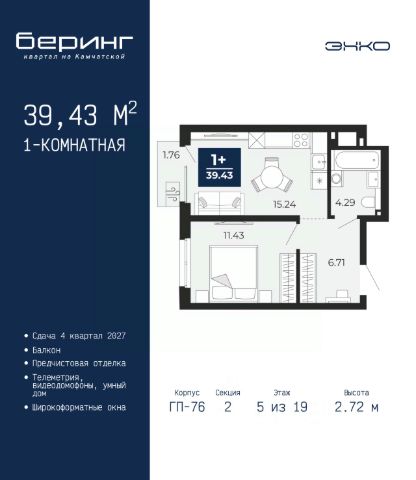 Спешите оформить бронирование по этой цене, предложение ограничено! Стоимость квартиры указана со скидкой, ваша экономия составит 497,767 руб. По всем вопросам обращайтесь в офис продаж, мы вам все подробно расскажем. Однокомнатная квартира-студия от застройщика с предчистовой отделкой в ЖК "Беринг" на 5 этаже. Общая площадь: 31.39 кв.м., площадь гостиной 15.14 кв.м., из которых 5 кв.м. выделено под кухонную зону. Все окна выходят на одну сторону. В квартире одна лоджия, один совмещенный санузел. Высота потолков 2.75 м. Дом монолитный, многоподъездный, переменной этажности, от 9 до 21 этажей. Квартира находится в 5-й секции высотой 21 этаж в корпусе ГП-74. На этаже 7 квартир. В подъезде 1 пассажирский и 1 грузовой лифт. Окончание строительства - 1 квартал 2026 года. Оформление сделки по договору долевого участия. Подобно знаменитому исследователю, мы чувствуем себя первооткрывателями этой локации. Хотим показать новую суть места, сформировать для вас жизненный опыт, которого ещё не было. Беринг — район зелёного цвета. Беринг — район, который откроется вам с другой стороны. Впечатлит новым уровнем комфорта и качеством жизни. Беринг — открытие на карте города. Первый квартал расположен в районе Тура, в границах улиц: Камчатская Западносибирская Энтузиастов. Вокруг уже есть всё для того, чтобы ежедневная рутина была лишь частью жизни и не доставляла дискомфорта. Школы и детские сады, магазины и аптеки, поликлиника, места для семейного отдыха, пеших и велопрогулок, и даже рыбалки. Масштабное озеленение дворов — визитная карточка ЭНКО и ваш оазис спокойствия, чтобы отвлечься от повседневности. Раскидистые деревья, кустарники, травы и цветы — осталось остановиться, вдохнуть и расслабиться, глядя на эту природную красоту. Стилистика подъездов продолжает концепцию Беринга, вдохновлённого Камчаткой: сдержанный, но при этом впечатляющий дизайн соседствует с удобством и функциональностью. #zmdDU9