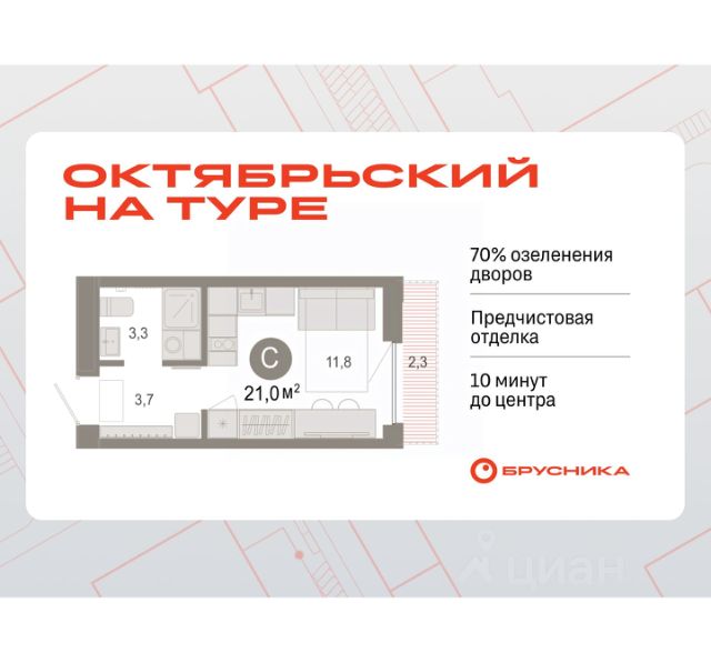 Квартира в счёт первоначального взноса по программе обмена. Студия в Октябрьском на Туре. Особенности планировки: предчистовая отделка, балкон. квартиры в нашей базе: ОКТ09-Ж4.5.5. Район Проект расположен на берегу реки, в одном из самых живописных и экологичных районов Тюмени. За последние годы облик района изменился. По соседству с индивидуальной застройкой выросли многоквартирные дома. При проектировании "Октябрьского на Туре" нашей приоритетной задачей стало сохранение природного ландшафта: мы постарались деликатно вписать в него современную архитектуру. Квартал удачно расположен с точки зрения дорожной инфраструктуры. На автомобиле путь до центра города составит 15 минут. Добраться до набережной и главных тюменских достопримечательностей можно и на общественном транспорте. В пешей доступности находится автобусная остановка. Проект По мастер-плану здесь будет восемь домов. Ядро застройки составляют замкнутые кварталы переменной этажности. Их высотность понижается по мере приближения к реке. На углах участка мы разместили башни-доминанты. Одной из достопримечательностей квартала станет парк на Туре — здесь появится зеленая зона протяженностью около 6 километров для пеших и велопрогулок. Смысловая ось квартала — широкая главная улица с высаженными вдоль неё высокими деревьями. Они создают тень и работают как шумо- и пылезащитные экраны. Это место сосредоточения основных пешеходных и транспортных потоков, на сторону которых мы ориентировали большинство коммерческих помещений. Отсюда жители могут свернуть на тихие соседские улицы и попасть на внутриквартальную площадь — ещё одну точку притяжения.Квартира в счёт первоначального взноса по программе обмена. #Zs9BcA