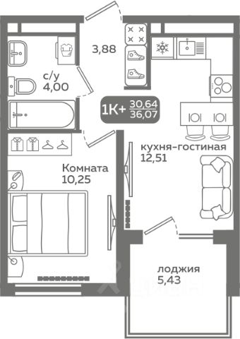 Однокомнатная квартира с предчистовой отделкой в ЖК "Прео" на 19 этаже. Общая площадь: 38.4 кв.м., жилая: 13.49 кв.м., площадь просторной кухни-столовой: 14.45 кв.м. Все окна выходят на одну сторону. В квартире одна лоджия, один совмещенный санузел. Высота потолков 2.7 м.