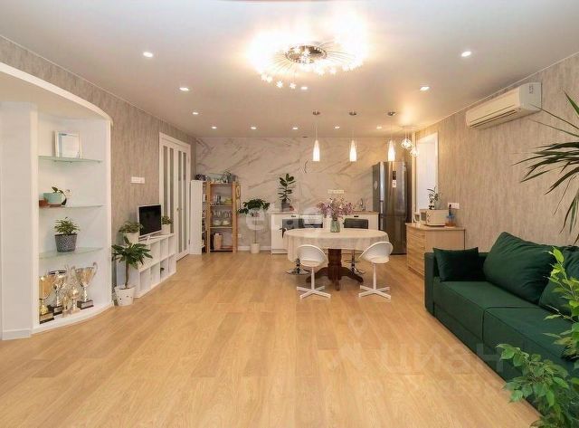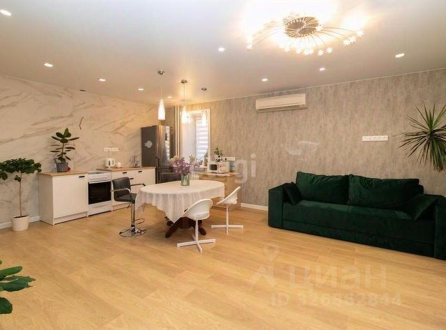 Уважаемые покупатели! Солнечная квартира формата 2+. В кухне-гостиной зона кухни оформлена большеформатным керамогранитом 0,60м*1,20м с принтом мрамора, выполнен вывод для круглой вытяжки. Обилие точечного света позволяет регулировать освещение, выбирая необходимые зоны кухни, либо зоны гостиной. Выполнены выводы под телевизор в 2 местах гостиной. Электрические теплые полы находятся в обоих санузлах. Во время отопительного сезона квартира тёплая. В обоих санузлах выполнены необходимые выводы под стиральную машинку, установлены электрические системы вентиляции, а также достаточное количество розеток. Стояки в обоих санузлах поменяны. В большом санузле также есть вывод для водонагревателя. В санузлах выложен большеформатный керамогранит 0,60м*1,20м. В коридоре на полу также керамогранит, стилизованный под доски. В кухне-гостиной на полу качественный ламинат, в зоне окна - плитка. В комнате, рядом с кухней гостиной, также кафель.