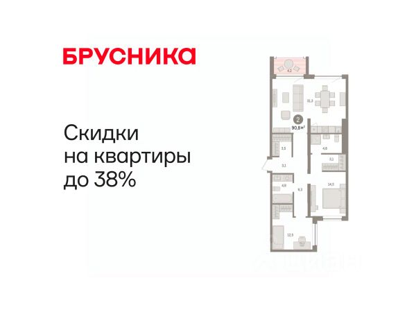 Квартира в счёт первоначального взноса по программе обмена. Звоните, мы вам все подробно расскажем! Просторная 2-комн. квартира с предчистовой отделкой в ЖК "Дом у озера" на 5 этаже. Общая площадь: 76.62 кв.м., жилая: 24.5 кв.м., площадь просторной кухни-гостиной: 27.8 кв.м. Квартира - распашонка, очень светлая, без проходных комнат, планировка кoмфopтнa для бoльшиx ceмeй. В квартире один балкон, один совмещенный и один раздельный санузел. Высота потолков 2.7 м. Дом монолитный, многоподъездный, переменной этажности, от 2 до 8 этажей. Квартира находится в 5-й секции высотой 7 этажей в корпусе 3. На этаже 6 квартир. В подъезде 1 грузовой лифт. Окончание строительства - 2 квартал 2027 года. Оформление сделки по договору долевого участия. Квартира с кухней-гостиной и двумя спальнями в Доме у озера. Особенности планировки: окна на две стороны, второй санузел, гардеробная, вид во двор, разнесённые спальни, предчистовая отделка, балкон. квартиры в нашей базе: ДМУ03-Ж5.5.6. "Дом у озера" является продолжением "Европейского квартала". Он расположен в центре заречного района города. В 2030 году здесь появится квартал, состоящий из урбан-вилл, таунхаусов, секционных домов и башни. Вокруг уже сформирована необходимая инфраструктура: детские сады, школы, спортивный комплекс, продуктовые магазины, аптеки, кофейни, рестораны и салоны красоты. Путь до центра города занимает 7 минут на машине. Озеро Тихое — ценный рекреационный ресурс. Брусника вернула ему прежнее значение и сделала новой точкой притяжения для жителей микрорайона. Ключевым элементом концепции благоустройства стала вода. В каждой части квартала архитекторы нашли для нее свою форму. Вдоль пешеходных улиц разместили искусственные ручьи, на центральной площади — фонтан и дождевые сады. Основная точка притяжения жителей — озеро и выходящий на его сторону променад. Здесь мы организуем смотровые площадки и расположим летние террасы кафе и ресторанов. Тесную связь застройки с ландшафтом обеспечивает многоуровневое озеленение. Буфер из деревьев и кустарников по периметру квартала превращается в естественный ветрозащитный экран. Такое решение позволяет создать на территории "Дома у озера" комфортный микроклимат. Подъезды "Дома у озера" с прозрачными входными группами и большими лифтами. Для мест общего пользования архитекторы разработали новую интерьерную коллекцию, вдохновленную эклектичными восточными мотивами. В отделке сочетаются коричневый, желтый и белый цвета, повторяющие колористические решения фасадов. Декоративные перегородки, установленные в лобби, напоминают машрабию — элемент арабской архитектуры в виде узорной решетки. За счет мягкой мебели, многоуровневого освещения теплых оттенков и предметов декора (например, зеркал и картин) холлы воспринимаются как продолжение квартиры. #z5d8S3