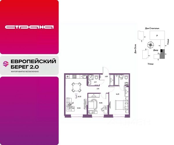 Двухкомнатная квартира от застройщика с предчистовой отделкой в ЖК "Зарека" на 5 этаже. Общая площадь: 68.29 кв.м., жилая: 30.3 кв.м., площадь просторной кухни-гостиной: 21.8 кв.м. Квартира без проходных комнат, окна выходят нa три cтopoны дома. В квартире один балкон, два совмещенных санузла. Высота потолков 2.7 м. Дом монолитный, многоподъездный, переменной этажности, от 6 до 16 этажей. Квартира находится в 5-й секции высотой 6 этажей в корпусе 5-2. На этаже 3 квартиры. В подъезде 1 пассажирский и 1 грузовой лифт. Окончание строительства - 4 квартал 2026 года. Оформление сделки по договору долевого участия. Продаётся с паркингом и кладовой. Квартира с кухней-гостиной и двумя спальнями в жилом районе "Зарека". Особенности планировки: балкон, предчистовая отделка, разнесённые спальни. квартиры в нашей базе: ЗРК05.2-Ж5.5.1. Проект На планировочную структуру "Зареки" повлияла близость к автомобильному мосту Челюскинцев. Мы расположили жилые здания так, чтобы они постепенно удалялись от проезжей части. Приём напоминает лесенку: чем сильнее мост возвышается над участком застройки, тем дальше по отношению к нему стоят дома. Этот ступенчатый сдвиг позволил нам сформировать буфер между кварталами и оживлённой магистралью. Мы намерены высадить здесь высокие деревья и создать дополнительную защиту от дорожных шума и пыли. В границах нашего участка мы намерены разместить школу и два встроенных детских сада на 135 и 150 мест. Общественные пространства С севера на юг территорию будет пронизывать пешеходный бульвар. Мы мыслим это общественное пространство как главный центр притяжения. На нём будут сосредоточены основные детские игровые и спортивные зоны, места для встреч и спокойного отдыха. Он также сыграет роль мостика, ведущего к другим нашим проектам — "Европейскому кварталу" и "Дому у озера". Одна из базовых идей мастер-плана касается береговой линии. Сегодня озеленение этой территории носит стихииныи характер, а прямому доступу к Туре препятствует дамба. Мы хотим благоустроить пространства у воды и открыть их для людей. Архитекторы спроектировали систему многоярусных троп и спусков к реке, смотровые площадки и места для активного отдыха и пикников. #ZWC6S4