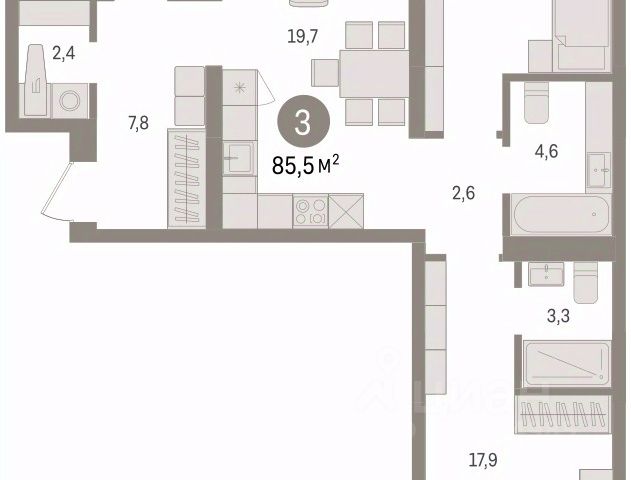 Просторная трехкомнатная квартира с предчистовой отделкой в ЖК "Зарека" на 5 этаже. Общая площадь: 80.66 кв.м., жилая: 29 кв.м., площадь просторной кухни-гостиной: 25.8 кв.м. Угловая квартира, идеально подойдет любителям тишины и панорамных видов. В квартире один совмещенный и один раздельный санузел. Высота потолков 2.7 м. Дом монолитный, многоподъездный, переменной этажности, от 8 до 16 этажей. Квартира находится в 1-й секции высотой 8 этажей в корпусе 2-1. На этаже 7 квартир. В подъезде 1 пассажирский и 1 грузовой лифт. Окончание строительства - 2 квартал 2029 года. Оформление сделки по договору долевого участия. Квартира с кухней-гостиной и тремя спальнями в жилом районе "Зарека". Особенности планировки: второй санузел, предчистовая отделка, разнесённые спальни. О доме Замкнутый квартал высотой 8 этажей с 16-ти этажной башней-доминантой и двором на стилобате двухуровневого паркинга. Дом 2.1 сочетает в себе приемы классической и современной архитектуры. Выразительность достигается благодаря симметричной композиции фасада, чередование массинга идет за счет эркеров и подрезок. Фасады первых этажей выполнены из клинкерного кирпича, выше - штукатурные. Акцентом на фасаде являются металлические импосты окон, темно-серого цвета, который будет контрастировать со светлыми оттенками самого фасада. квартиры в нашей базе: ЗРК02.1-Ж1.5.7. Проект На планировочную структуру "Зареки" повлияла близость к автомобильному мосту Челюскинцев. Мы расположили жилые здания так, чтобы они постепенно удалялись от проезжей части. Приём напоминает лесенку: чем сильнее мост возвышается над участком застройки, тем дальше по отношению к нему стоят дома. Этот ступенчатый сдвиг позволил нам сформировать буфер между кварталами и оживлённой магистралью. Мы намерены высадить здесь высокие деревья и создать дополнительную защиту от дорожных шума и пыли. В границах нашего участка мы намерены разместить школу и два встроенных детских сада на 135 и 150 мест. Общественные пространства С севера на юг территорию будет пронизывать пешеходный бульвар. Мы мыслим это общественное пространство как главный центр притяжения. На нём будут сосредоточены основные детские игровые и спортивные зоны, места для встреч и спокойного отдыха. Он также сыграет роль мостика, ведущего к другим нашим проектам — "Европейскому кварталу" и "Дому у озера". Одна из базовых идей мастер-плана касается береговой линии. Сегодня озеленение этой территории носит стихииныи характер, а прямому доступу к Туре препятствует дамба. Мы хотим благоустроить пространства у воды и открыть их для людей. Архитекторы спроектировали систему многоярусных троп и спусков к реке, смотровые площадки и места для активного отдыха и пикников. #Zme5ZZ