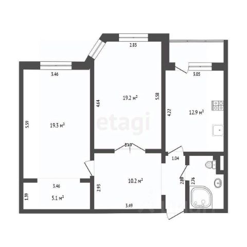 Планировка: Три отдельных комнаты (17.2, 13.2, 12.4 кв.м), изолированная кухня (8 кв.м), раздельный санузел (полностью в кафеле), прихожая, кладовка и большая лоджия.