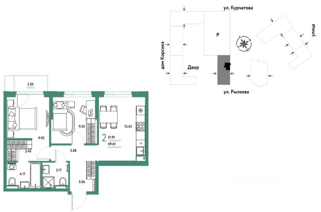 Квартира в счёт первоначального взноса по программе обмена. Квартира с кухней-гостиной и двумя спальнями в Октябрьском на Туре. Особенности планировки: гардеробная, вид во двор, лоджия, разнесённые спальни, предчистовая отделка, мастер-спальня. квартиры в нашей базе: ОКТ09-Ж2.6.2. Район Проект расположен на берегу реки, в одном из самых живописных и экологичных районов Тюмени. За последние годы облик района изменился. По соседству с индивидуальной застройкой выросли многоквартирные дома. При проектировании "Октябрьского на Туре" нашей приоритетной задачей стало сохранение природного ландшафта: мы постарались деликатно вписать в него современную архитектуру. Квартал удачно расположен с точки зрения дорожной инфраструктуры. На автомобиле путь до центра города составит 15 минут. Добраться до набережной и главных тюменских достопримечательностей можно и на общественном транспорте. В пешей доступности находится автобусная остановка. Проект По мастер-плану здесь будет восемь домов. Ядро застройки составляют замкнутые кварталы переменной этажности. Их высотность понижается по мере приближения к реке. На углах участка мы разместили башни-доминанты. Одной из достопримечательностей квартала станет парк на Туре — здесь появится зеленая зона протяженностью около 6 километров для пеших и велопрогулок. Смысловая ось квартала — широкая главная улица с высаженными вдоль неё высокими деревьями. Они создают тень и работают как шумо- и пылезащитные экраны. Это место сосредоточения основных пешеходных и транспортных потоков, на сторону которых мы ориентировали большинство коммерческих помещений. Отсюда жители могут свернуть на тихие соседские улицы и попасть на внутриквартальную площадь — ещё одну точку притяжения.Квартира в счёт первоначального взноса по программе обмена. #z6Sb8T